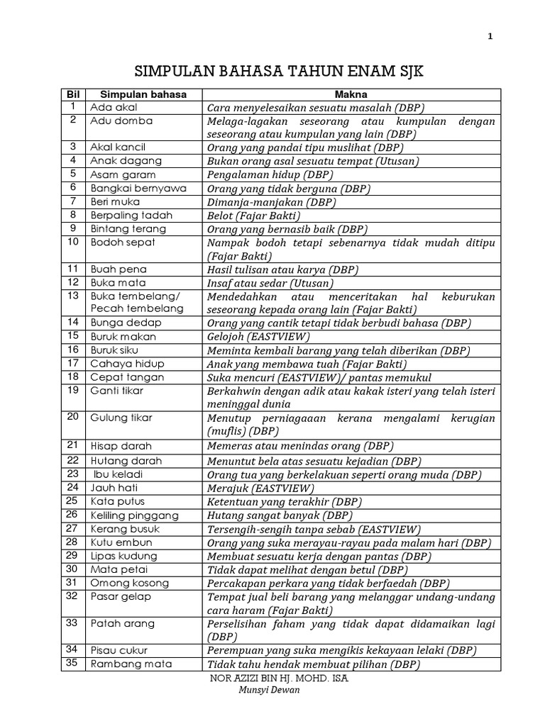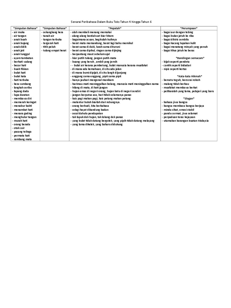 Senarai Peribahasa Sjkt Tahun 4 Tahun 6 Pdf