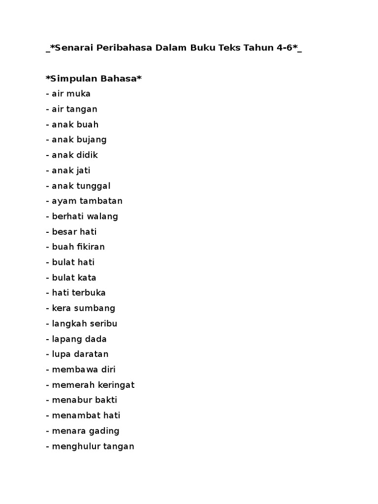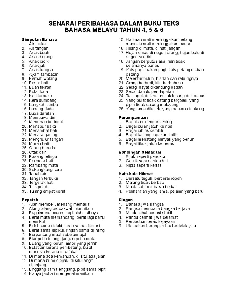 Senarai Peribahasa Tahun 4 Hingga 6 Pdf